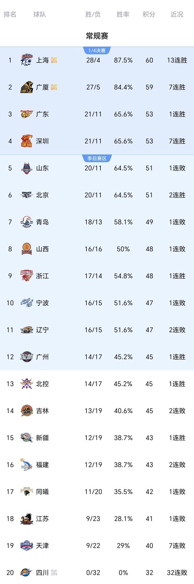 CBA一夜3场惨案:广东广厦深圳大胜 上海翻盘山西!最新排名乱了