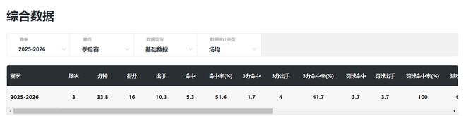 本赛季常规赛她场均32.8分钟,拿到17.4分2.6篮板8.7助攻1.6抢断,投篮命中率44.7%,三分命中率38.3%,她是联赛的本土得分王+助攻王+MVP,本赛季31岁的老将完成三王合一。